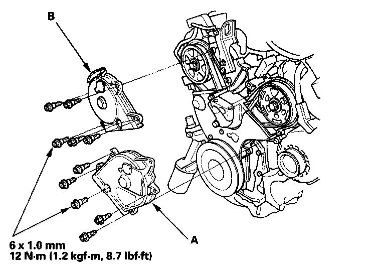 - 2 Mark (D) the bolt head and crankshaft pulley as shown, then tighten the bolt an additional 60° (The mark on the bolt head line up with the mark on the crankshaft pulley).