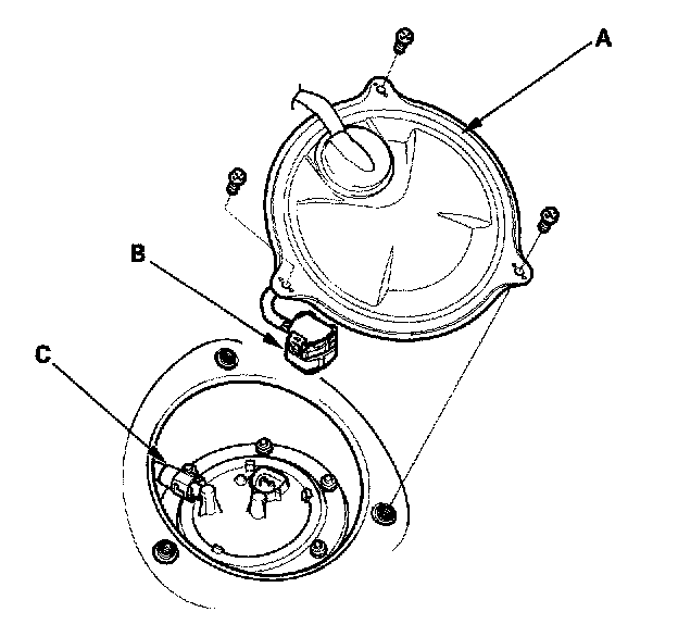 5. Disconnect the quick-connect fitting (C) from the fuel tank unit.