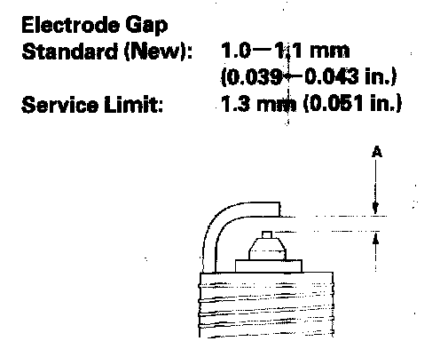 3. Do not adjust the gap of indium tip plugs (A); replace the spark plug if the gap is out of specification.