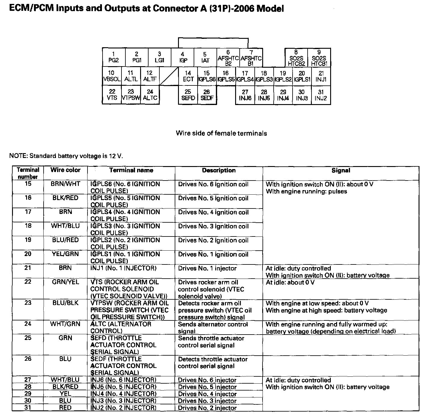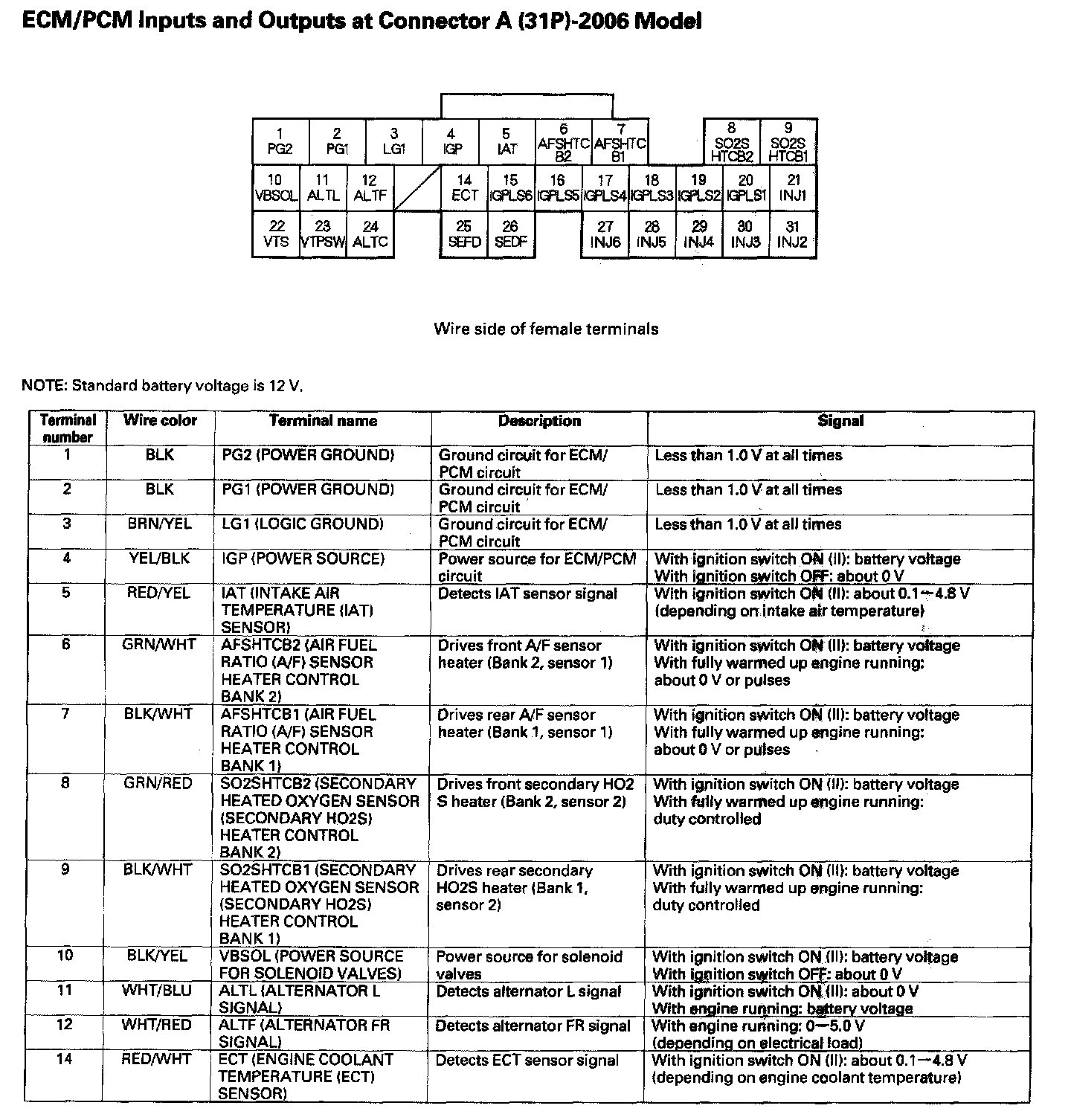 ECM/PCM Inputs And Outputs At Connector A (31P) Part 1: