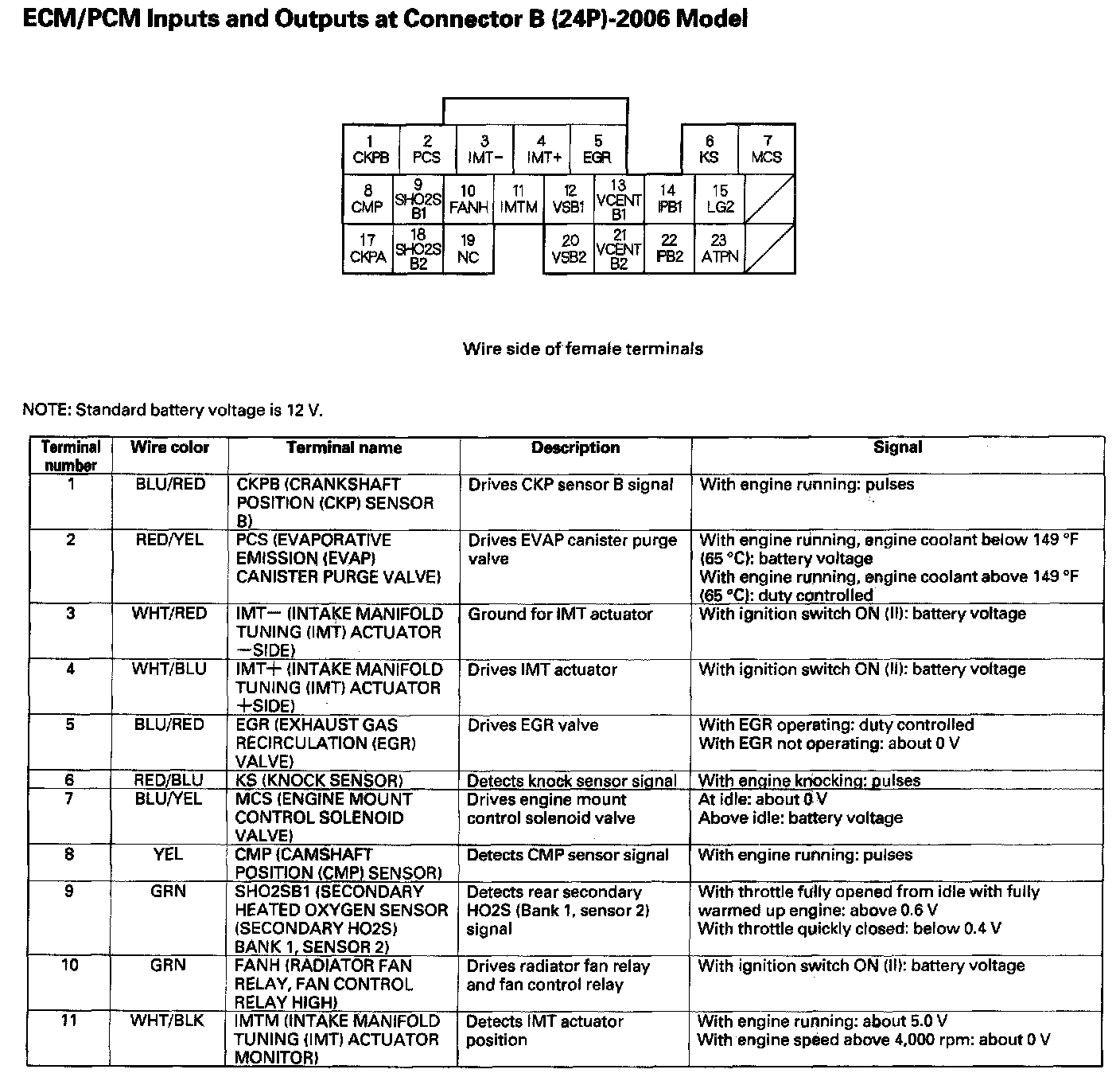 ECM/PCM Inputs And Outputs At Connector B (24P) Part 2: