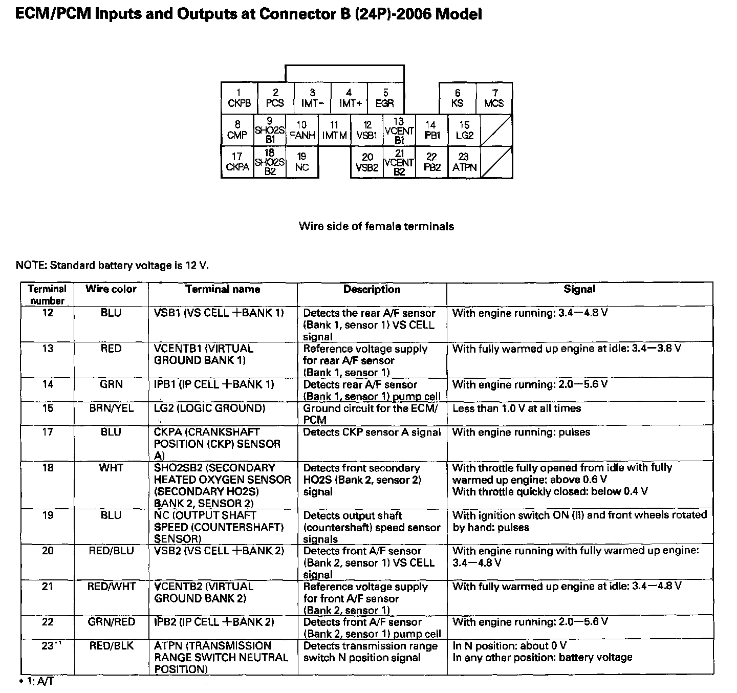 ECM/PCM Inputs And Outputs At Connector B (24P) Part 1: