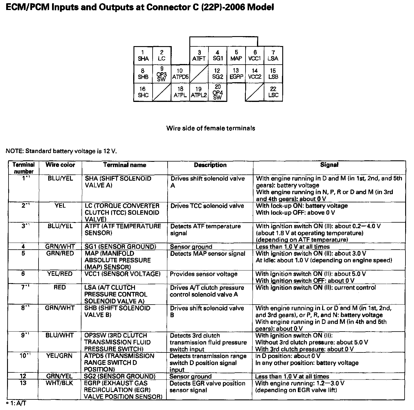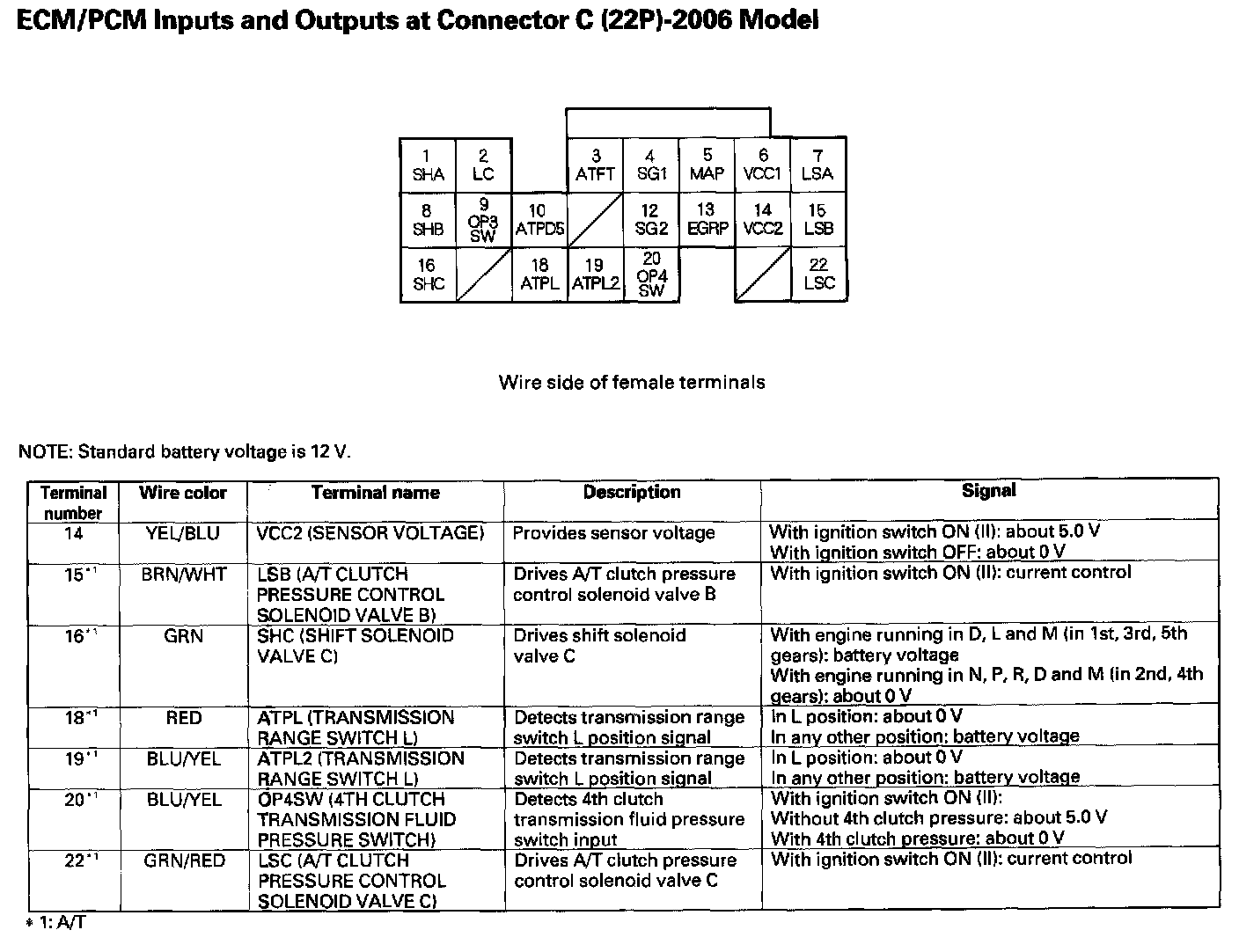 ECM/PCM Inputs And Outputs At Connector C (22P) Part 1: