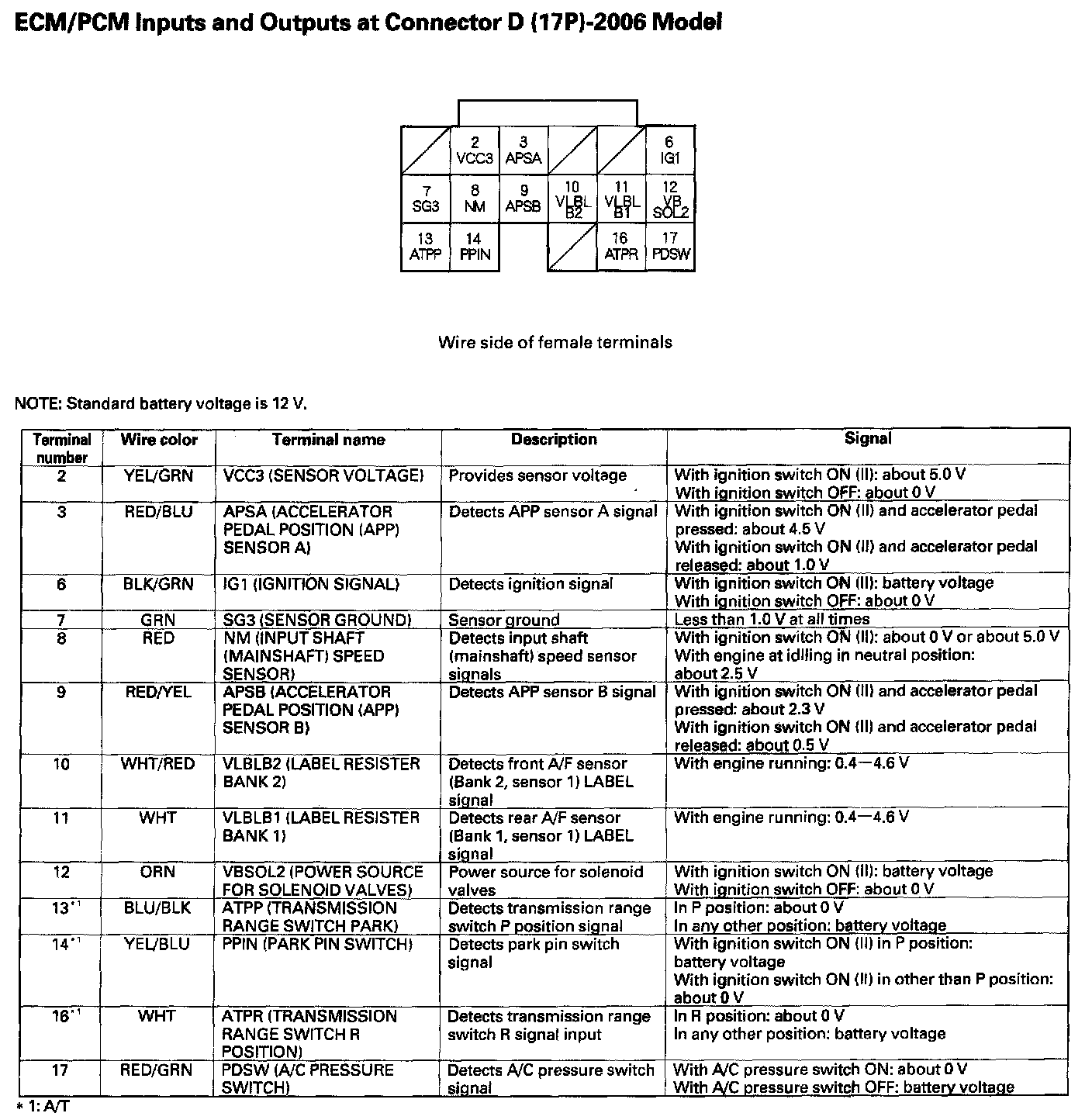 ECM/PCM Inputs And Outputs At Connector D (17P):