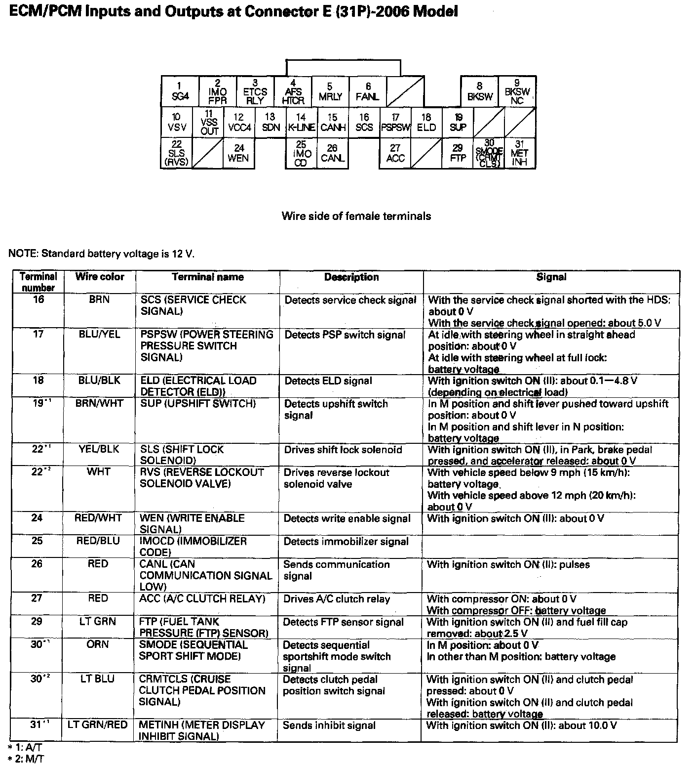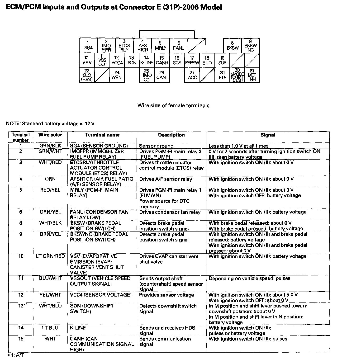 ECM/PCM Inputs And Outputs At Connector E (31P) Part 1: