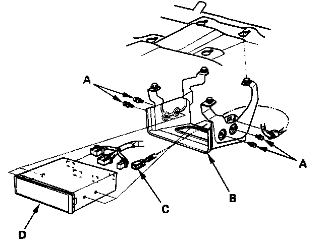 1. Remove the four screws (A) from the bracket (B) located the trunk room.
