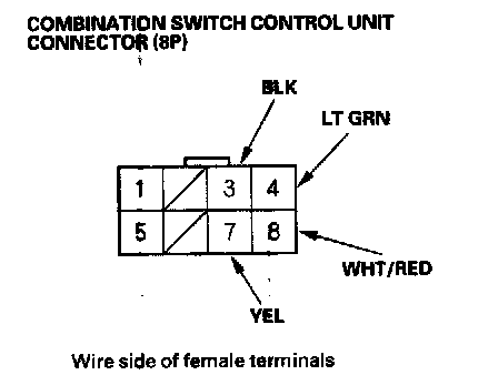 Home >> Acura >> 2006 >> TSX L4-2.4L >> Repair and Diagnosis >> Powertrain Management >> Computers and Control Systems >> Information Bus >> Testing and Inspection >> Component Tests and General Diagnostics >> Combination Switch Control Unit Input Test
