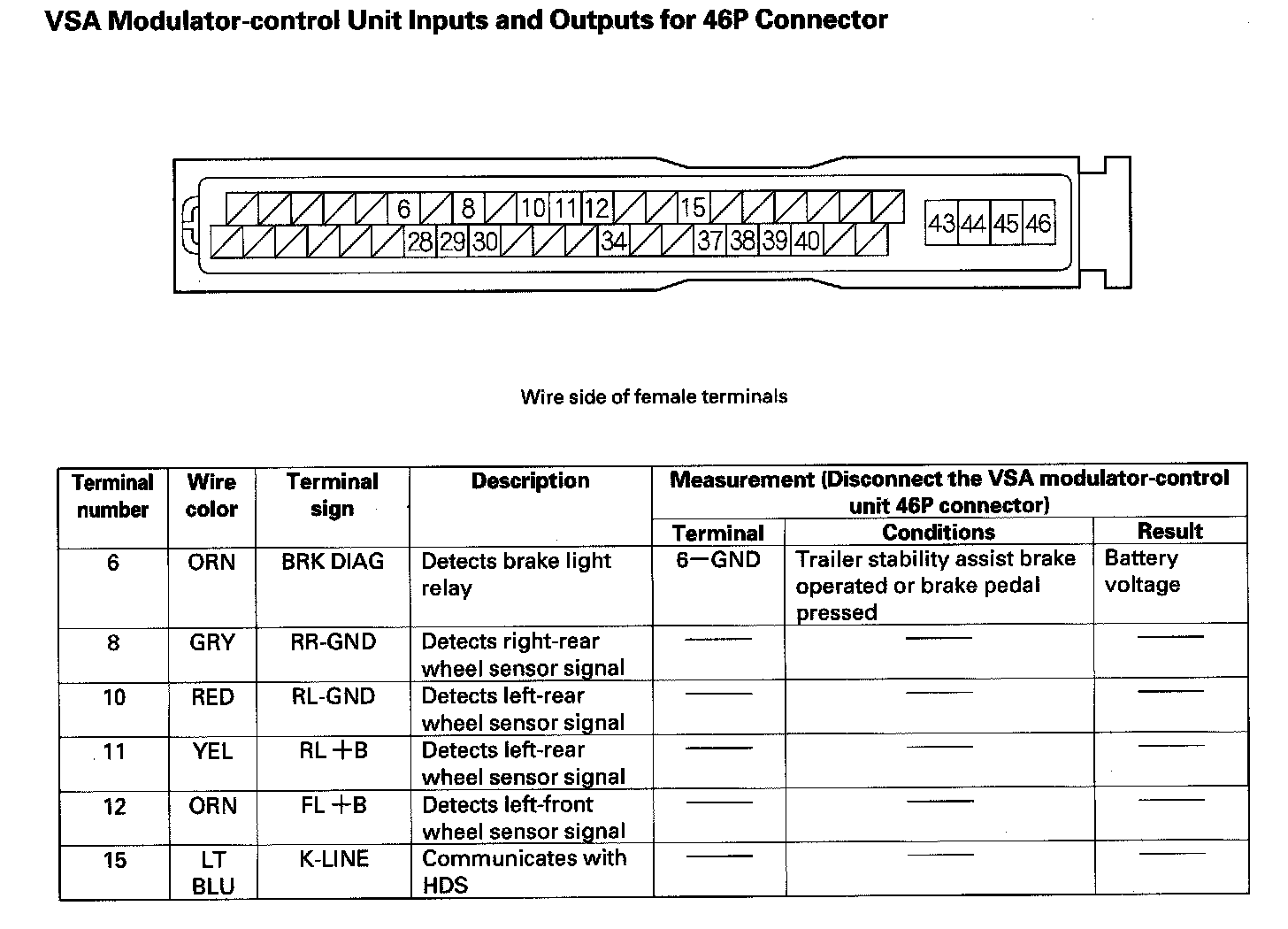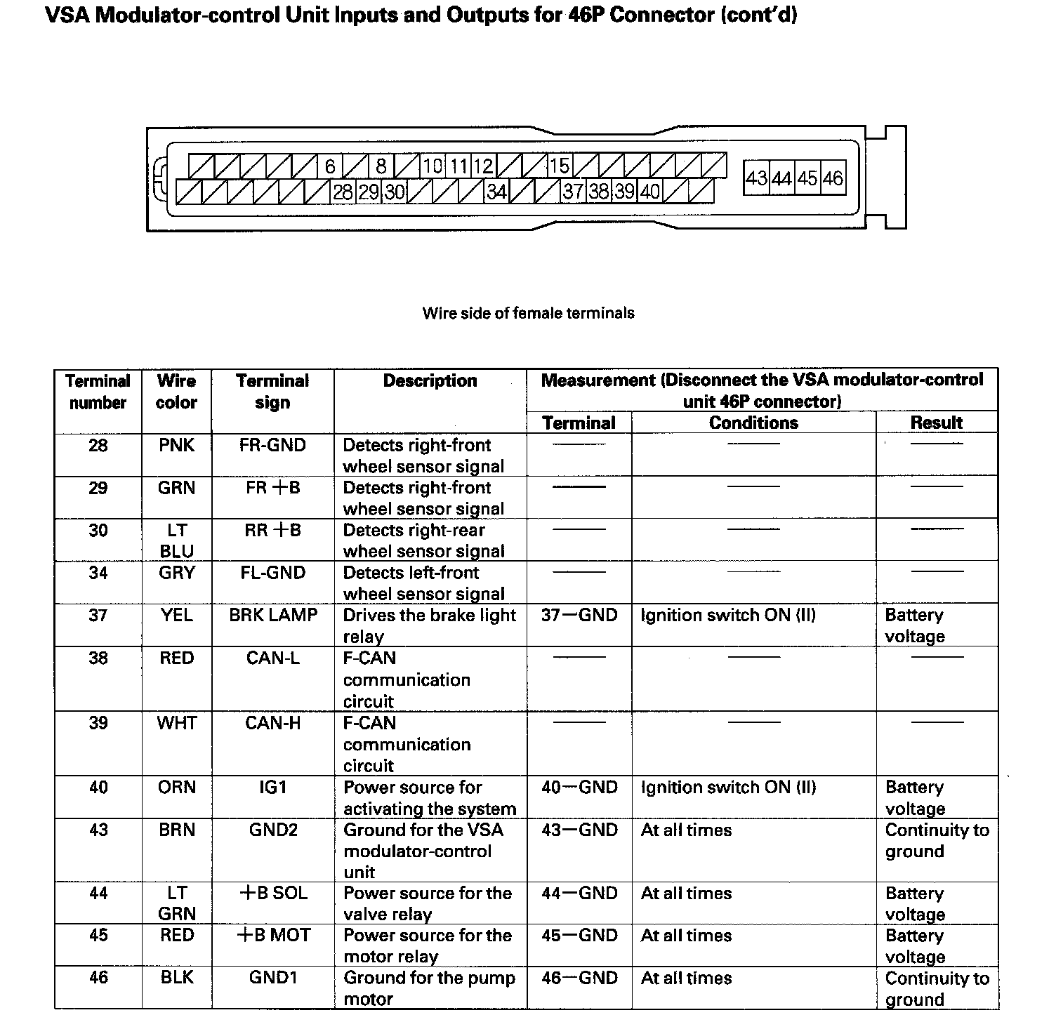 VSA Modulator-control Unit Inputs And Outputs For 46P Connector (Part 1):
