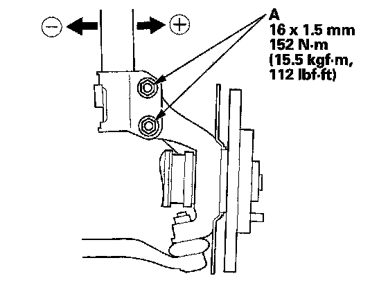 9. Replace the damper pinch bolts with the adjusting bolts (A), and adjust the camber angle.