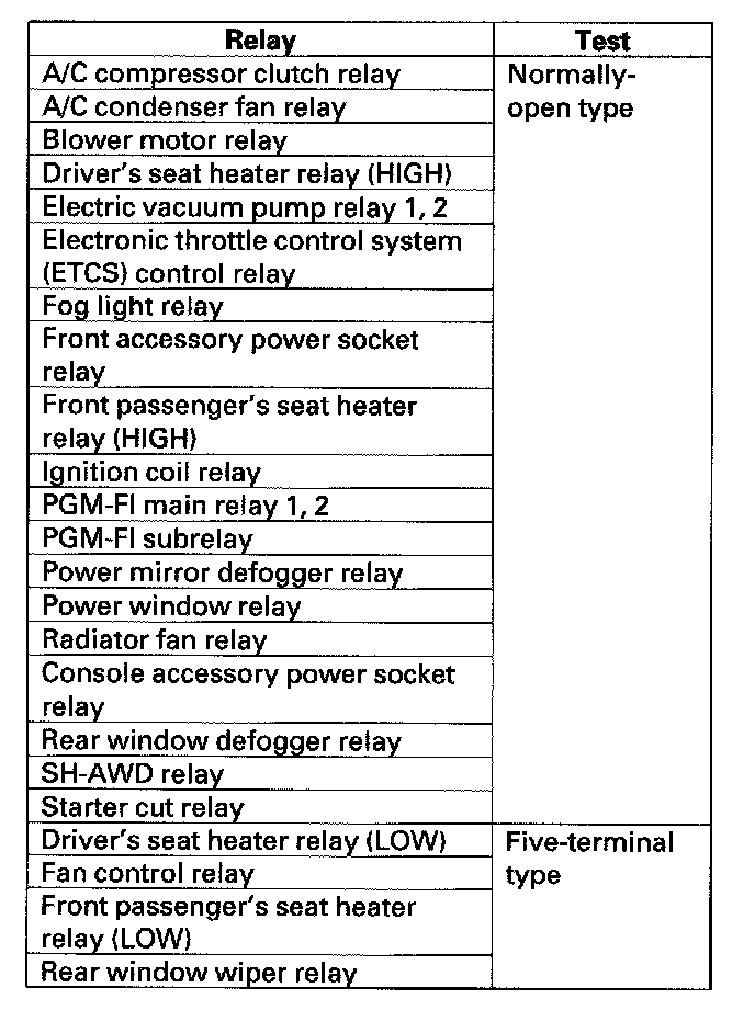 Main Relay (Computer/Fuel System): Testing and Inspection