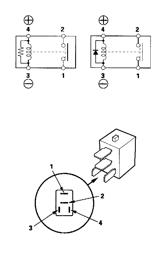 - There should be continuity between the No.1 and No.2 terminals when battery positive terminal is connected to the No.4 terminal, and battery negative terminal is connected to the No.3 terminal.