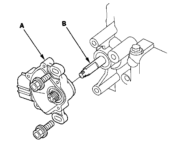 15. Install the transmission range switch (A) gently over the control shaft (B), and install the bolts loosely.
