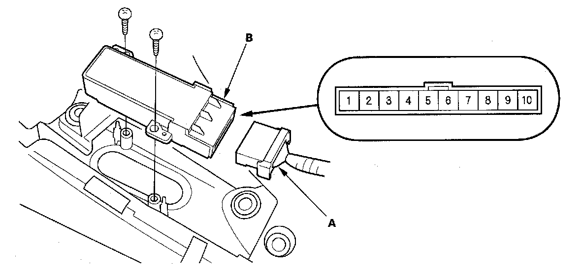2. Disconnect the 10P connector (A) from the memory switch (B).