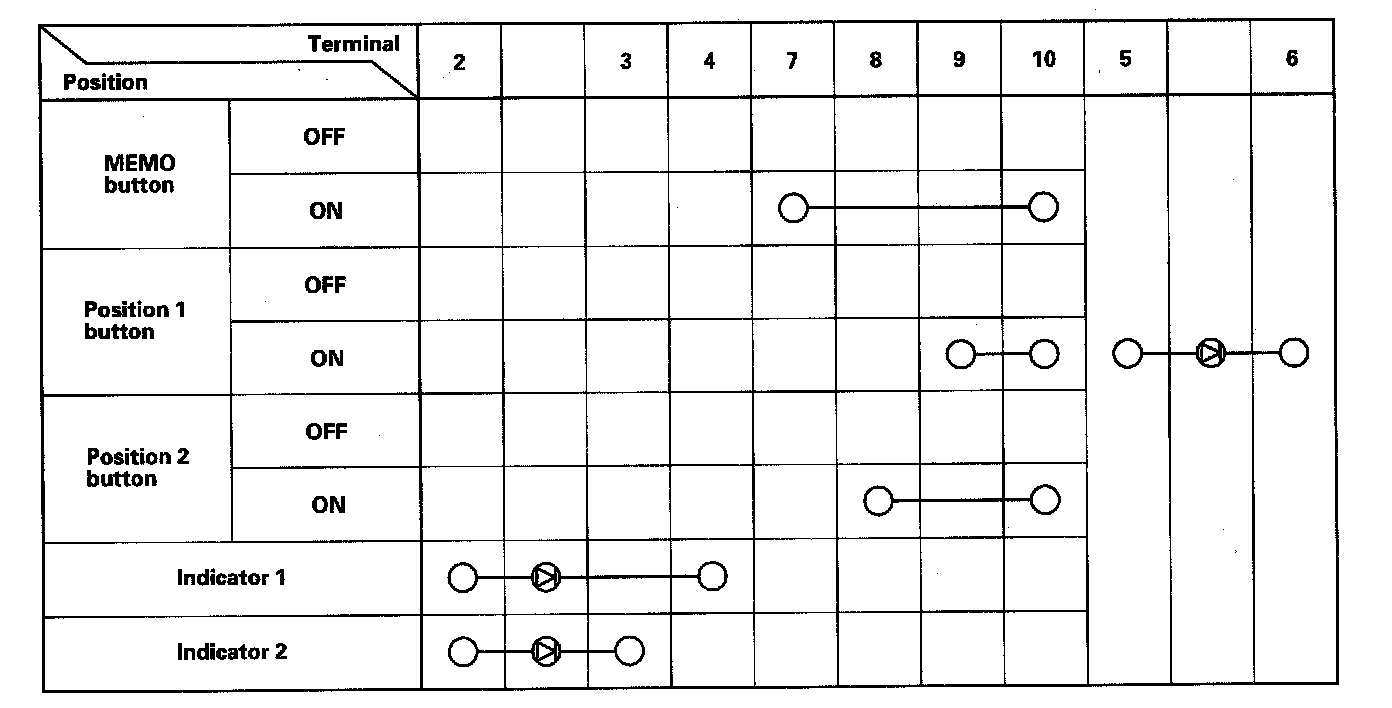 4. Check for continuity between the terminals in each switch position according to the table.