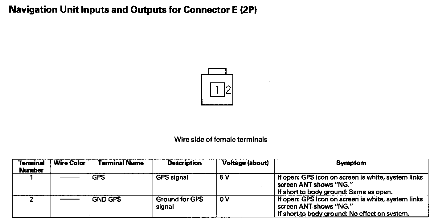 Navigation Unit Inputs And Outputs For Connector E (2P):