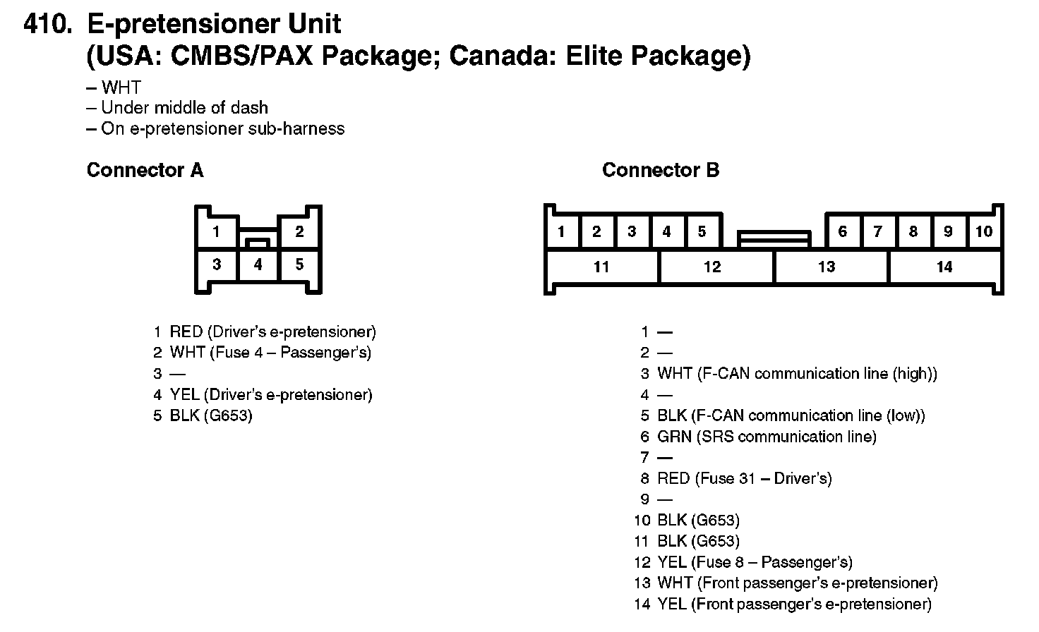 410. E-pretensioner Unit (USA: CMBS/PAX Package; Canada: Elite Package):