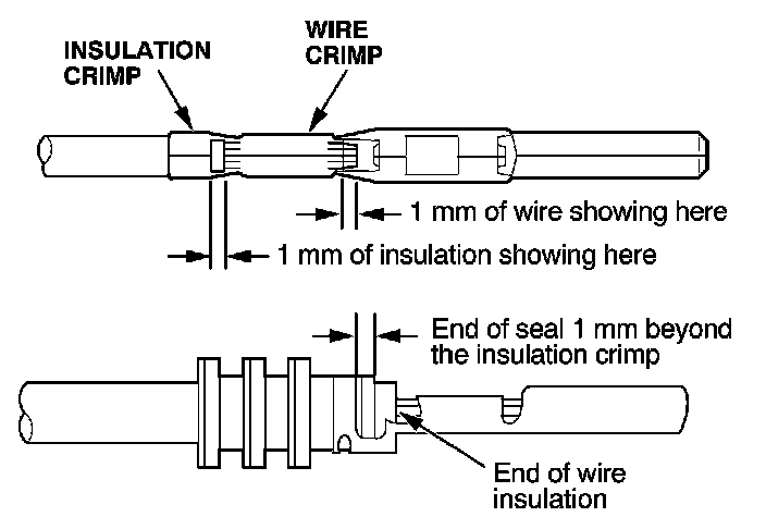 - If you do not have a wire seal, then use the next larger size crimp slot. Position the crimping tool over the insulation crimp section of the terminal, then squeeze the tool with both hands until the stops make contact.
