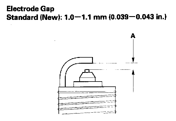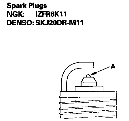 3. Do not adjust the gap (A) of iridium tip plugs; replace the spark plug if the gap is out of specification.