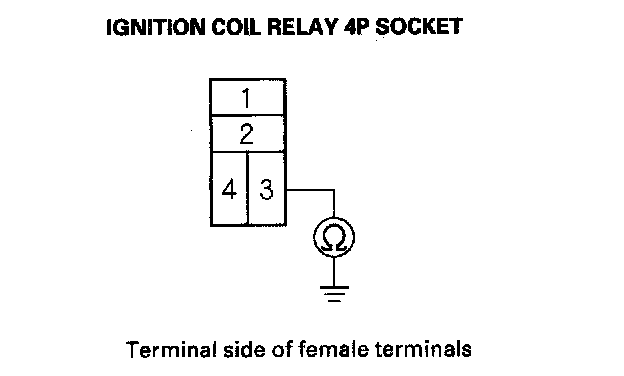 7. Check for continuity between ignition coil relay 4P socket terminal No. 3 and body ground.
