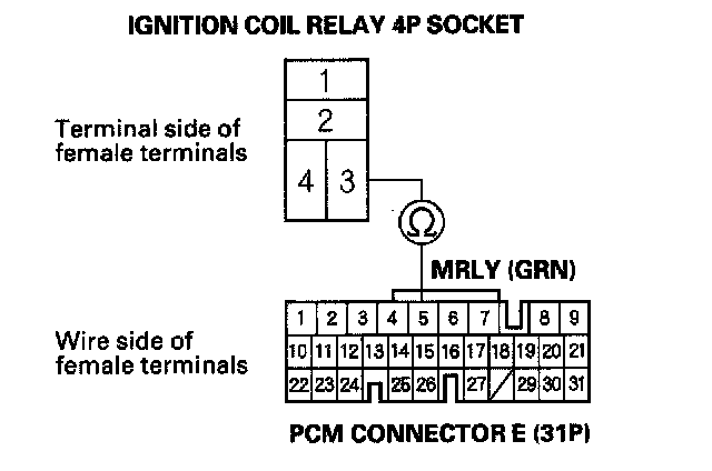 NO- Repair an open in the wire between ignition coil relay 4P socket terminal No. 3 and the PCM (E5).