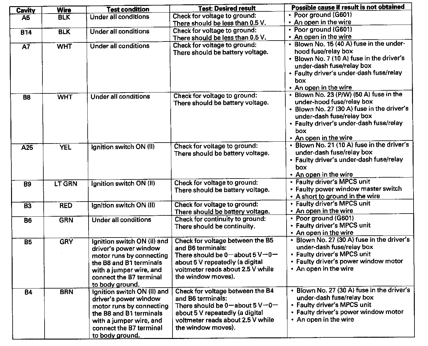 Driver's MPCS Unit Input Test1. Turn the ignition switch OFF.