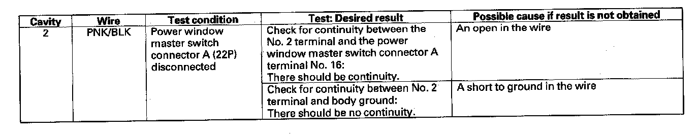 4. Disconnect the A22P connector from the door multiplex, and make these input tests at the connector.