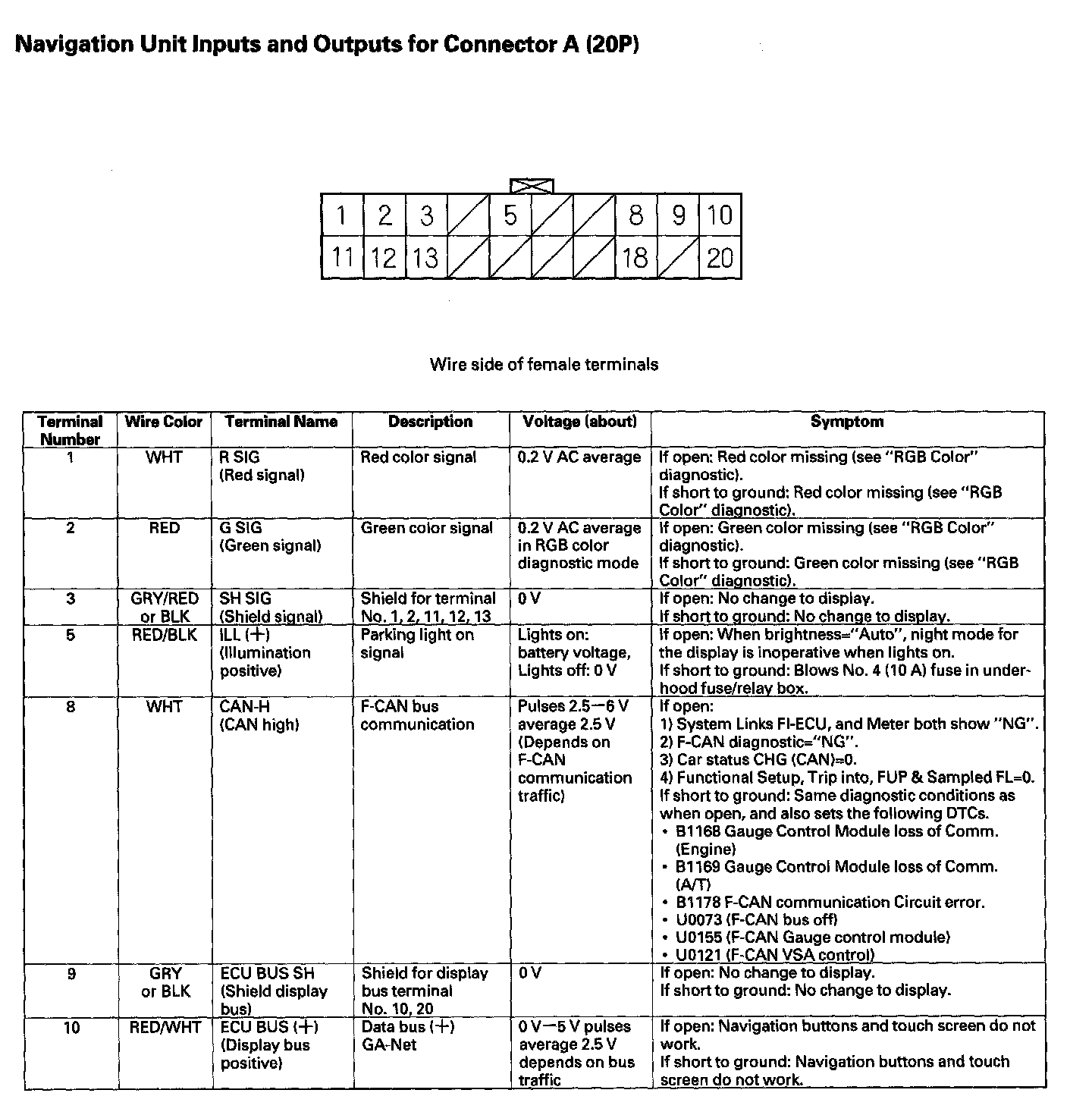 Navigation Unit Inputs And Outputs For Connector A (20P) Part 1: