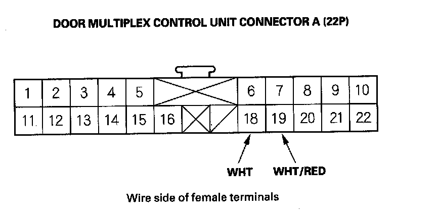 11. Reconnect the connector to the door multiplex control unit. Turn the ignition switch ON (II), and make these input tests at the appropriate connector.