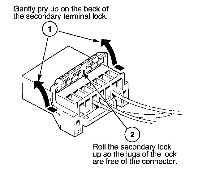 - If it has a secondary terminal lock, go to Connectors With a Secondary Lock. A secondary lock, found on most connectors on some models, is an additional locking device on the connector housing as a backup for the primary lock on the terminal.