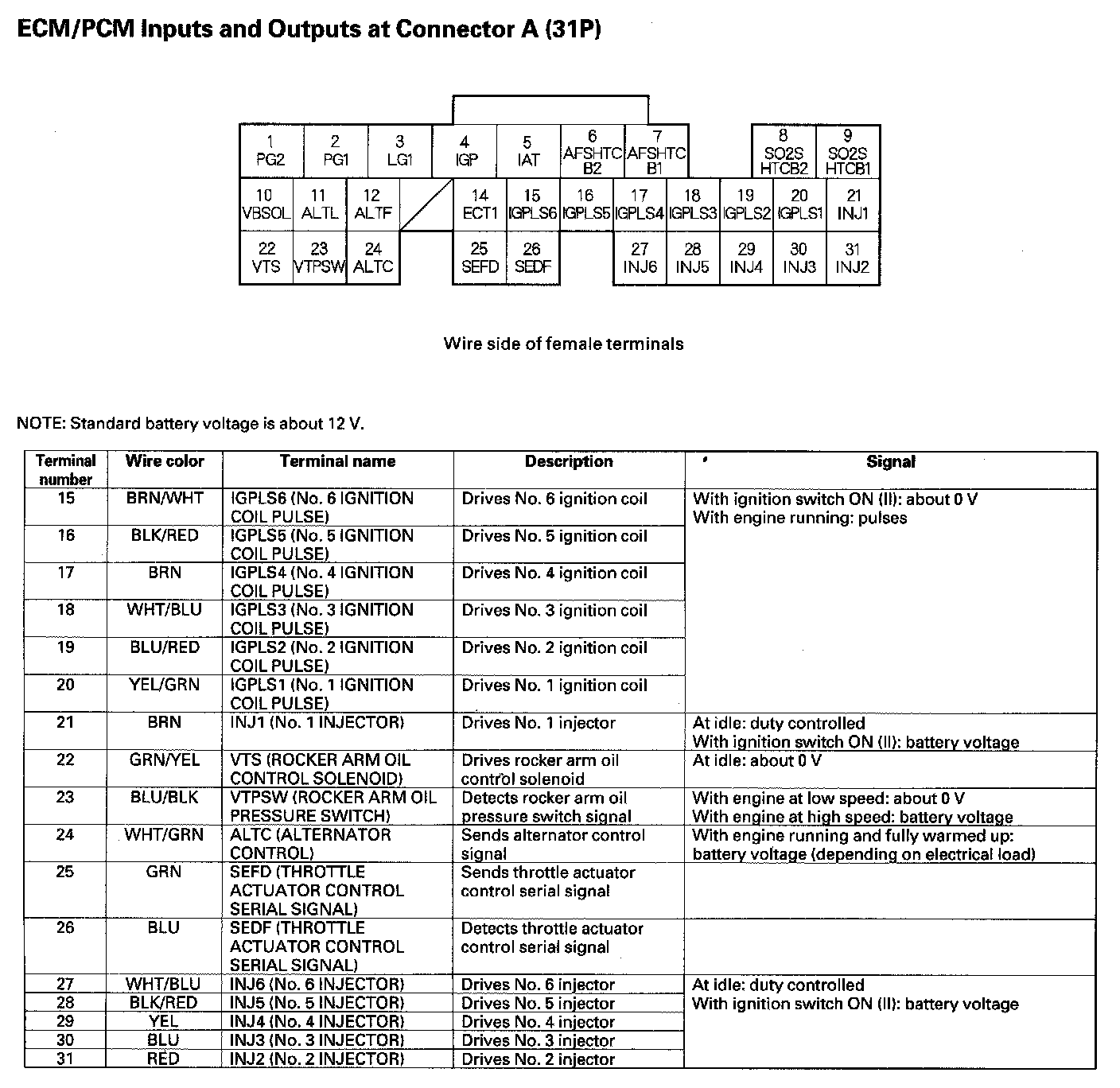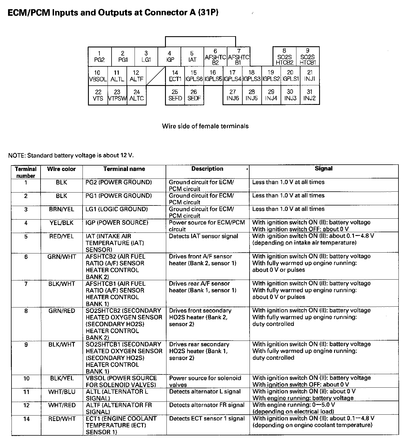 ECM/PCM Inputs And Outputs At Connector A (31P) Part 1: