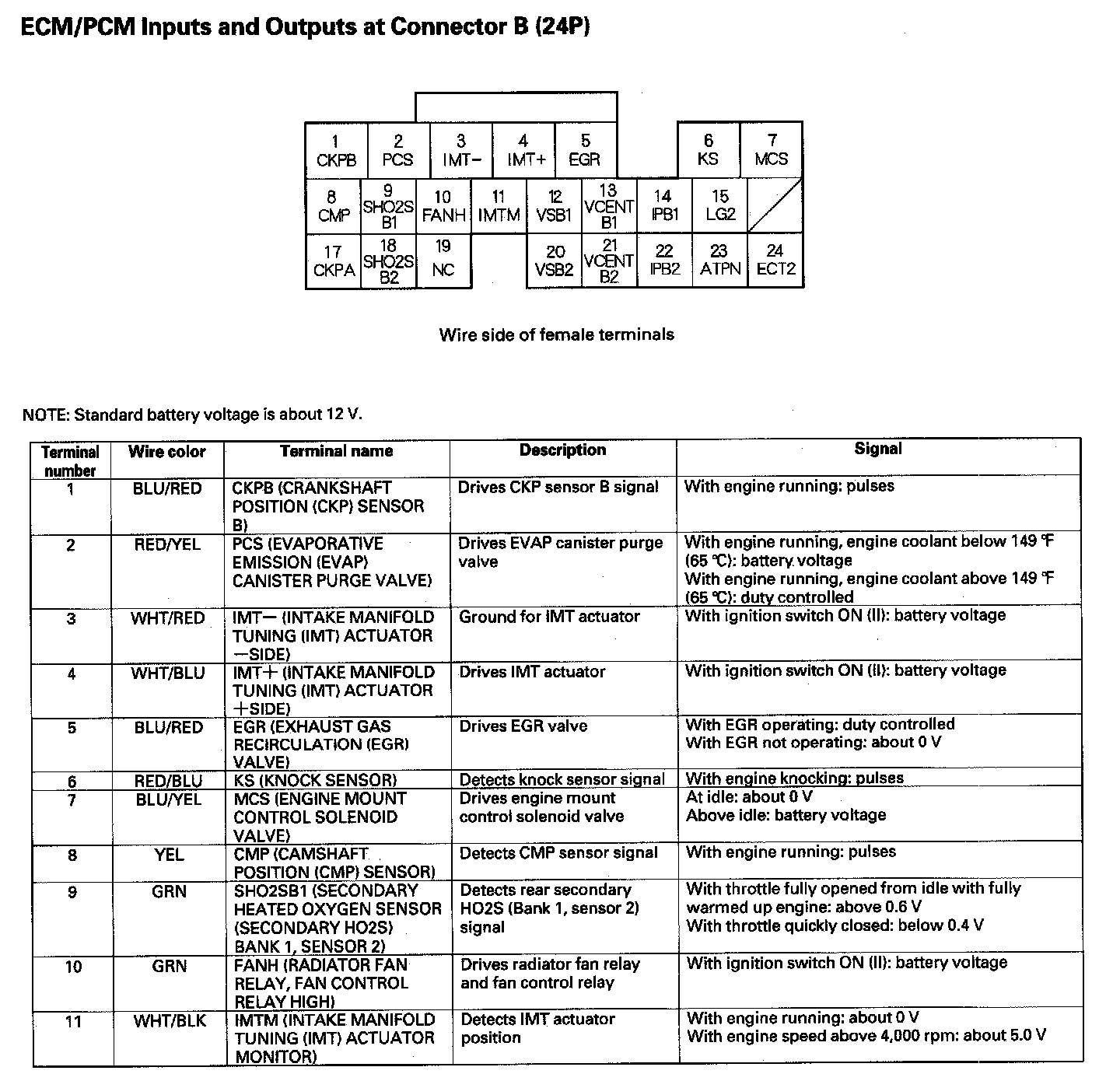 ECM/PCM Inputs And Outputs At Connector B (24P) Part 2: