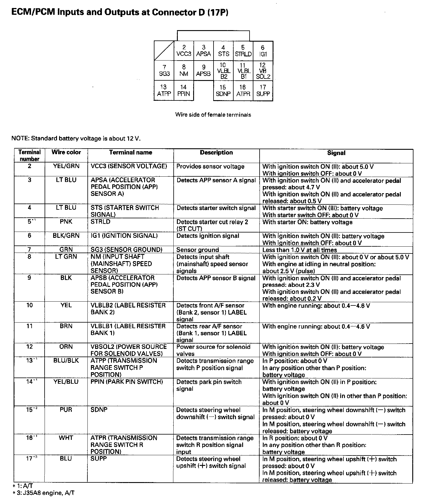 ECM/PCM Inputs And Outputs At Connector D (17P):