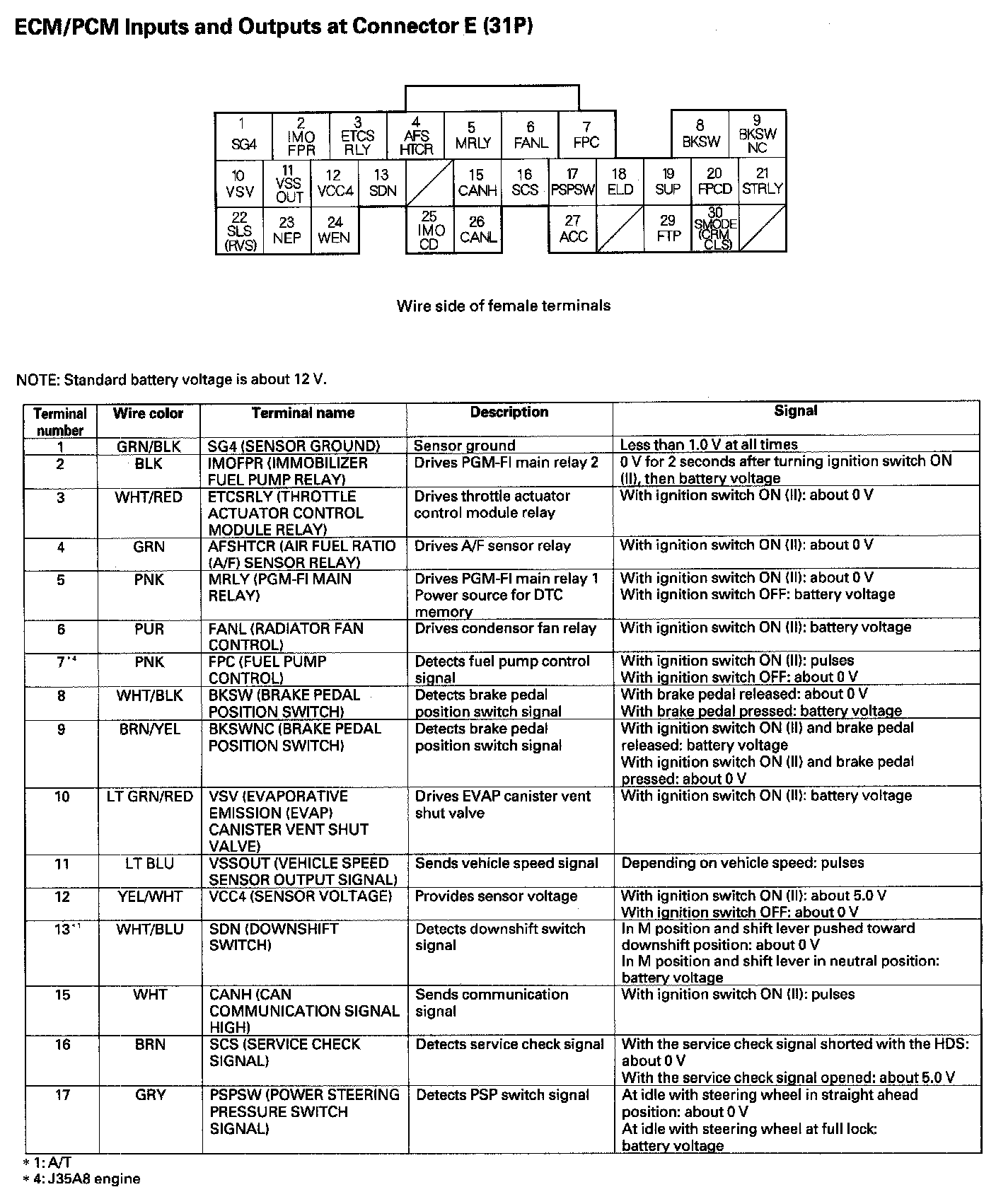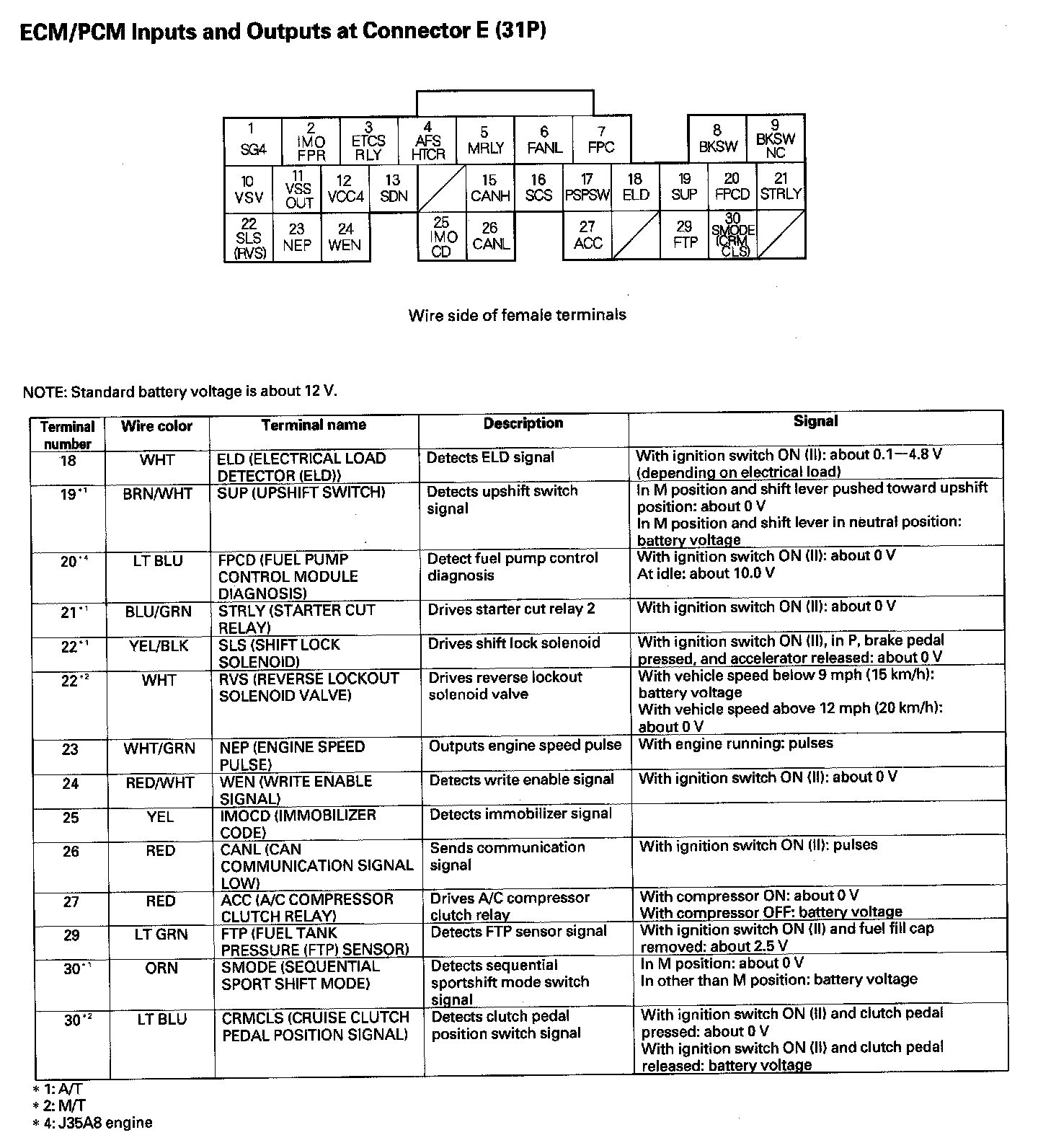 ECM/PCM Inputs And Outputs At Connector E (31P) Part 1: