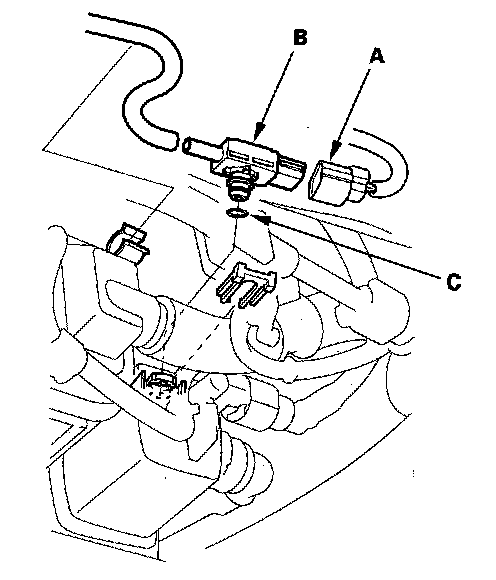 Install the parts in the reverse order of removal with a new O-ring (C).