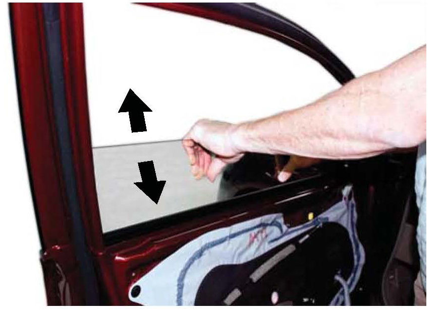 3. Reinstall the glass into the door without bolting it to the regulator, then manually slide it through its range of travel and check for excessive resistance: