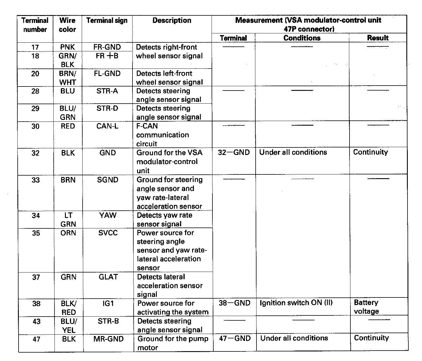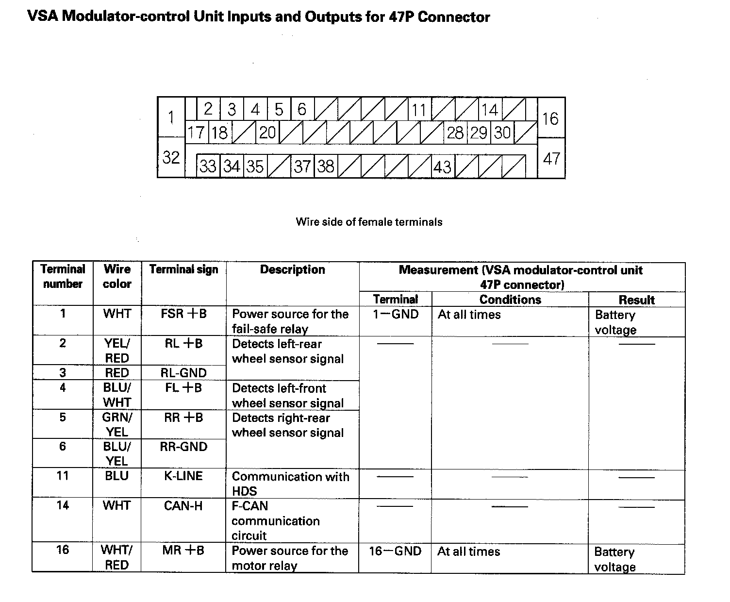 VSA Modulator-control Unit Inputs And Outputs For 47P Connector (Part 1):