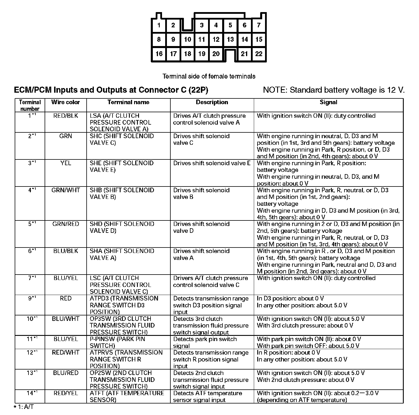 ECM/PCM Inputs And Outputs At Connector C (22P) (Part 1):