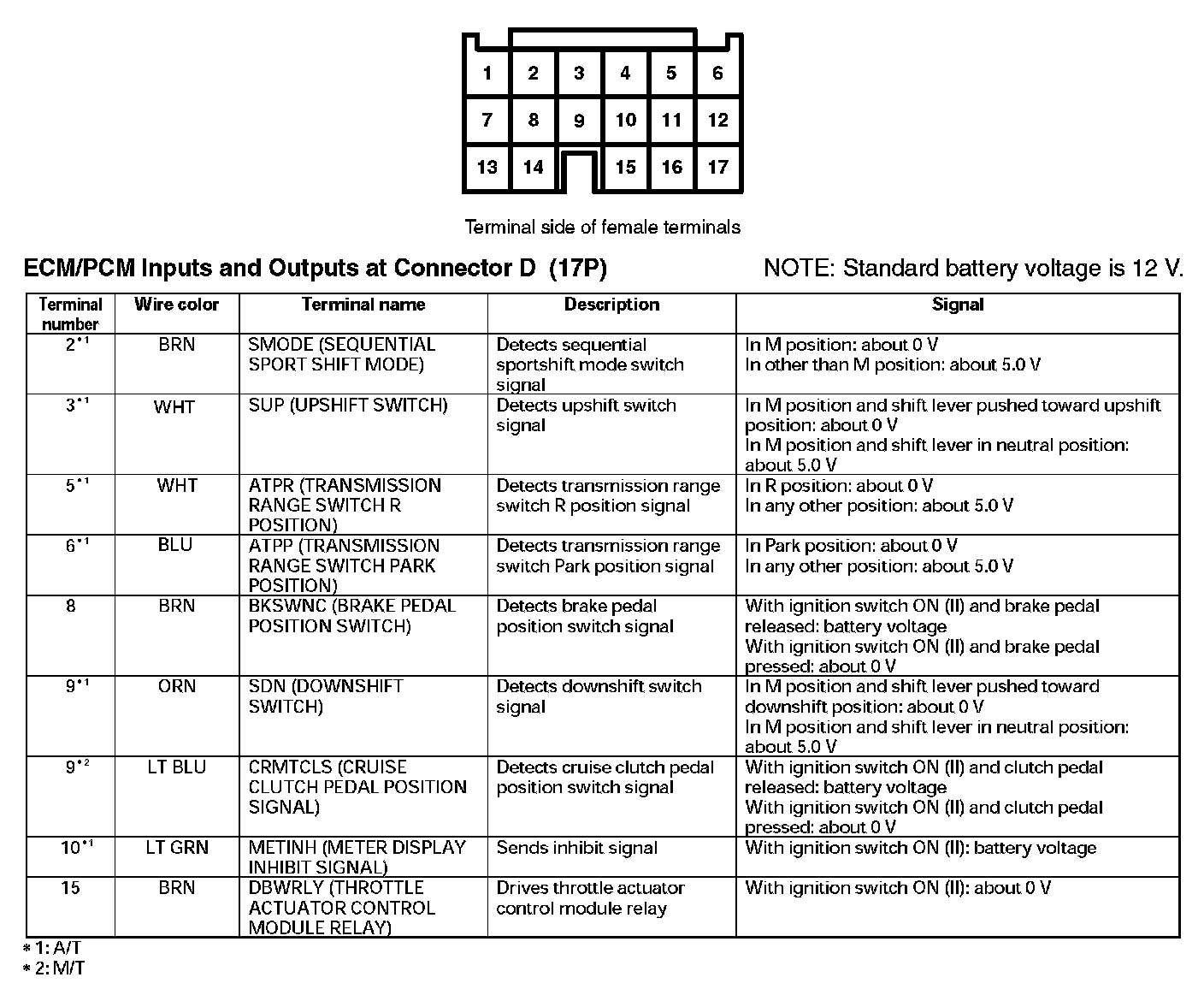 ECM/PCM Inputs And Outputs At Connector D (17P):
