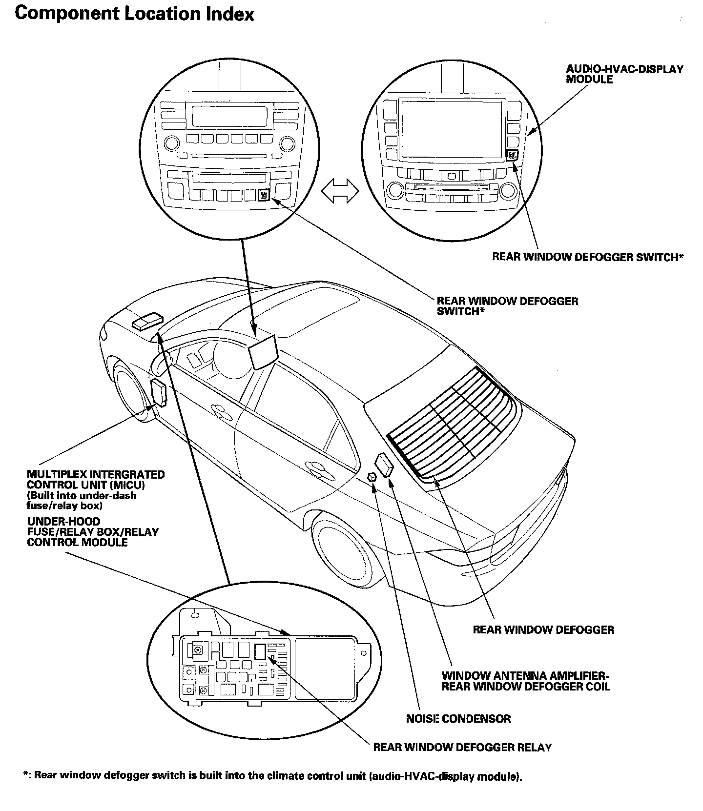 Rear Window Defogger Component Location Index:
