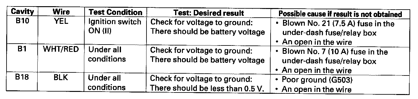 5. Disconnect the 18P connector from the gauge control module, and make these input tests at the connector.