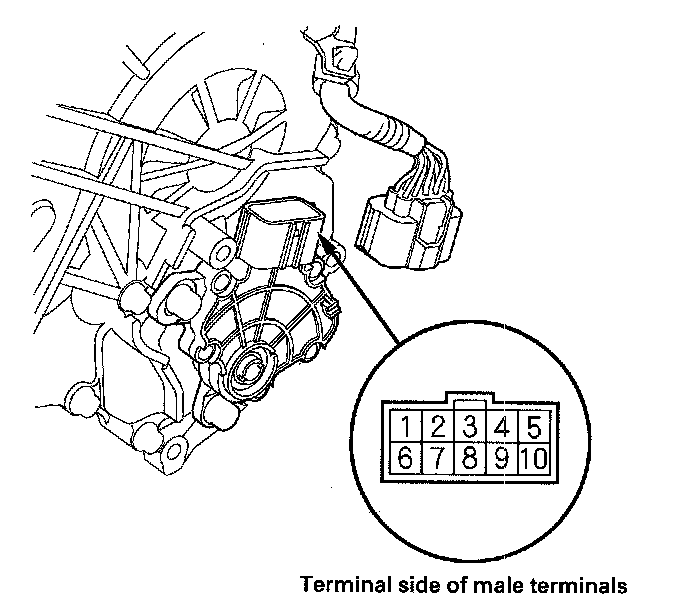 2. Check for continuity between terminals at the harness connector. There should be continuity between the terminals in the following table for each switch position.
