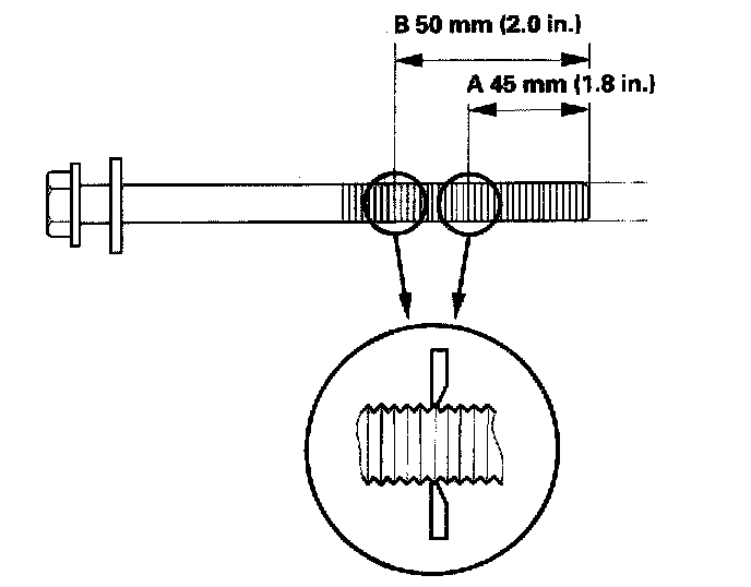 Cylinder HeadMeasure the diameter of each cylinder head bolt at point A and point B.