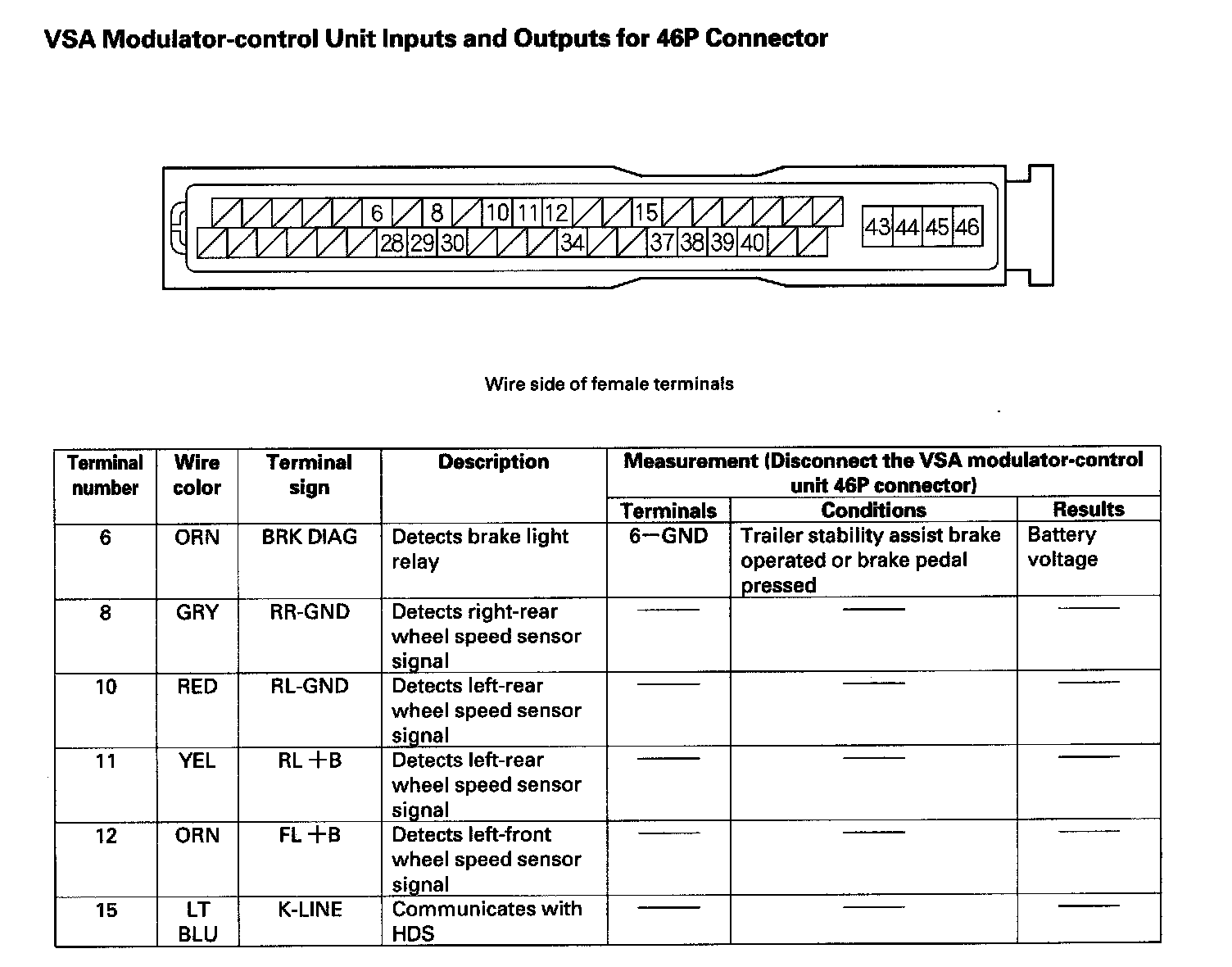 VSA Modulator-control Unit Inputs and Outputs for 46P Connector (Part 1):
