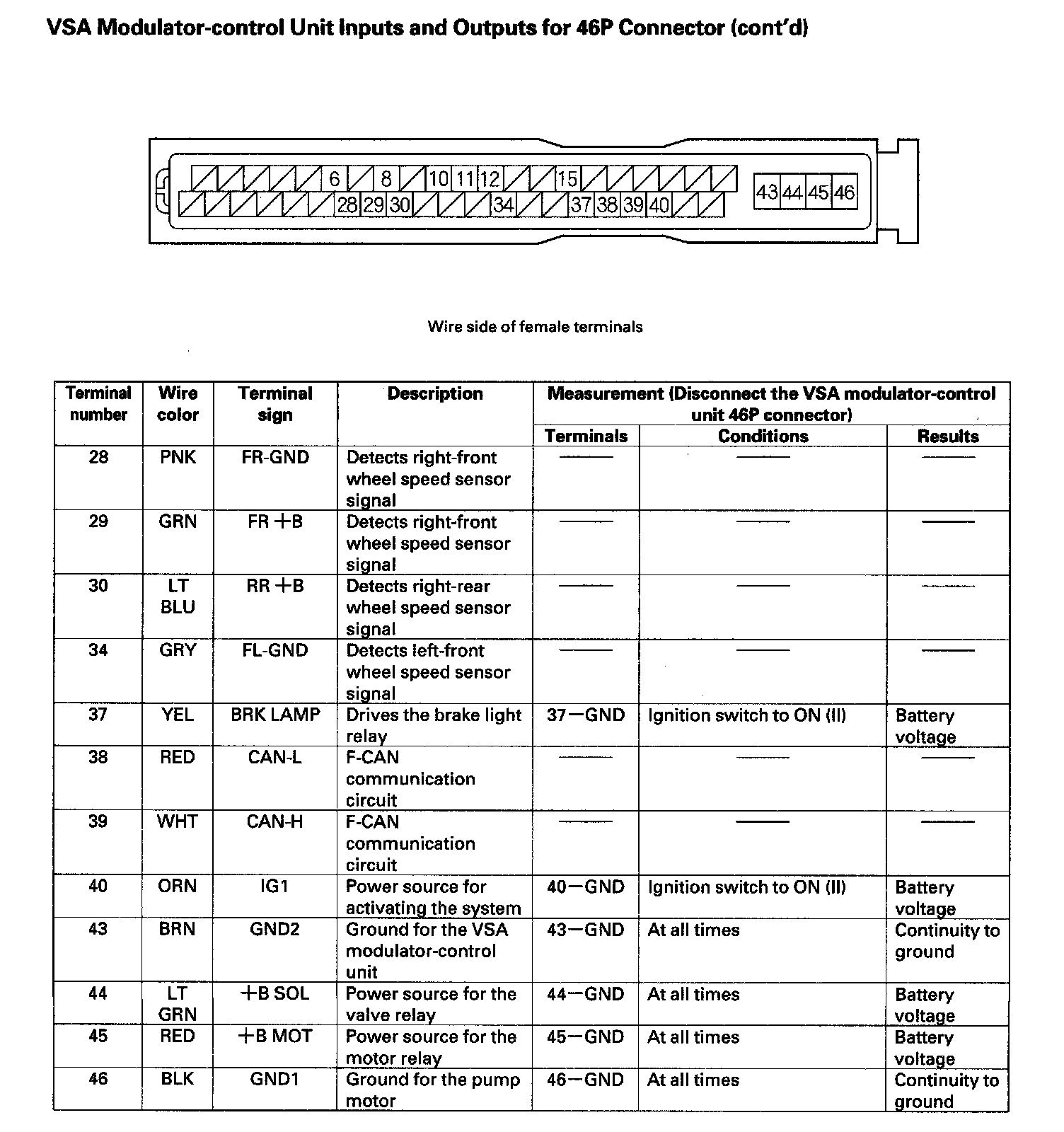 VSA Modulator-control Unit Inputs and Outputs for 46P Connector (Part 2):