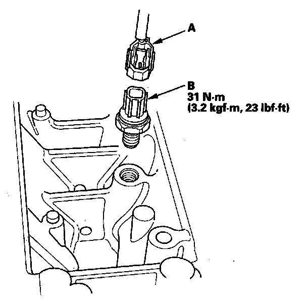 3. Disconnect the knock sensor 1P connector (A), then remove the knock sensor (B).