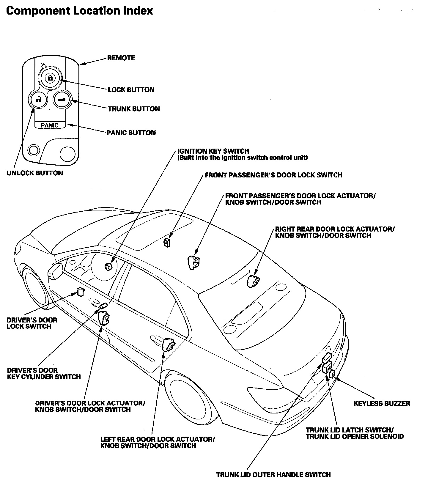 Keyless/Power Door Locks/Security System Component Location Index: