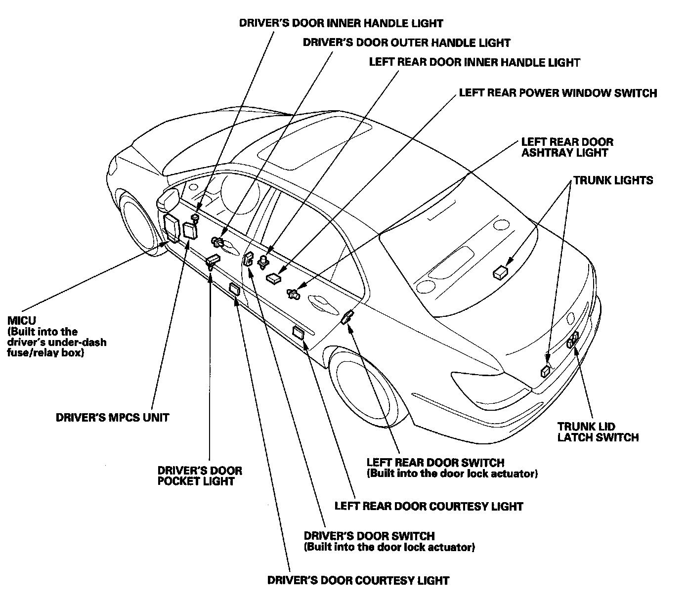 Keyless/Power Door Locks/Security System Component Location Index: