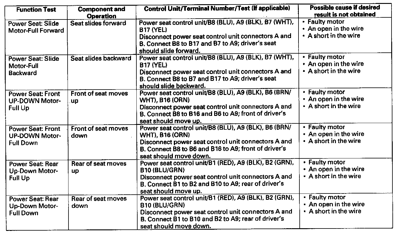 - If the test indicates that the component operates normally, but the function will not operate by doing the function test or the normal use of the component, the control unit that operates that function must be faulty; replace it.