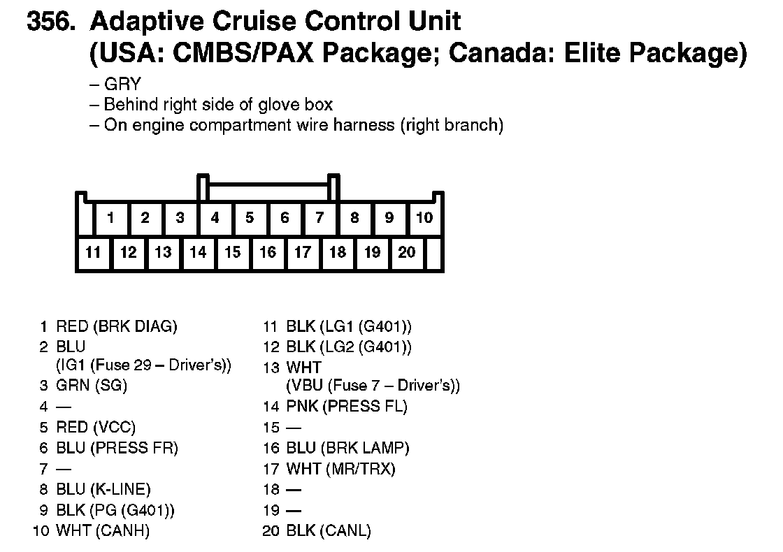 356. Adaptive Cruise Control Unit (USA: CMBS/PAX Package; Canada: Elite Package):