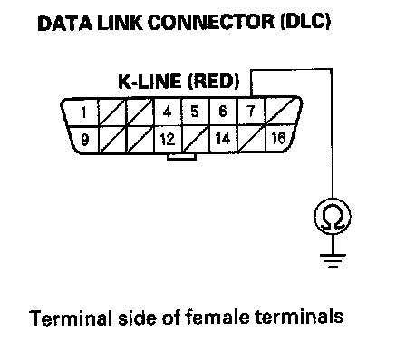 17. Check for continuity between DLC terminal No. 7 and body ground.